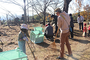 佐賀市金立町にある金立公園の市有林3.83ヘクタールを「SDCソリューションズの森林(もり)」と名づけ、植栽や下草刈り、枝打ちの森林整備を行うことで、佐賀市と協定を結んでいます。 11月29日(土)には、佐賀本社の社員およびそのご家族を含め約170名がボランティアとして参加し、下草刈りや山道・側溝の落ち葉拾い、清掃などの森林保全活動を行いました。