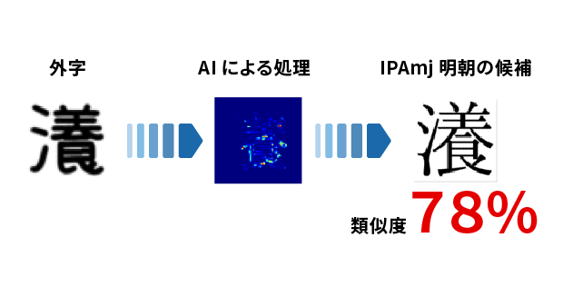 なお、同定対象の外字が IPAmj 明朝に存在する場合、AI が候補として抽出する確率は100%です。(※)